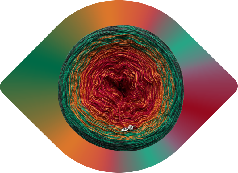 Kobaldsonne ist wie ein Sonnenaufgang im Zauberwald – wild, warm und voller Überraschungen. Von der glühenden Mitte bis zum leuchtenden Rand tanzen die Farben wie Funken auf Moos, als hätte ein Kobold sein Lieblingslicht in Garn gewickelt.